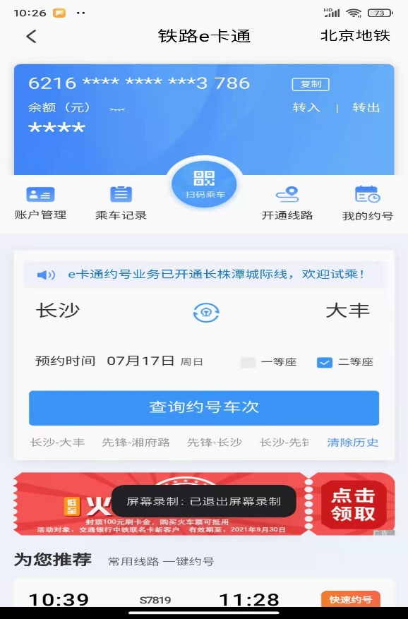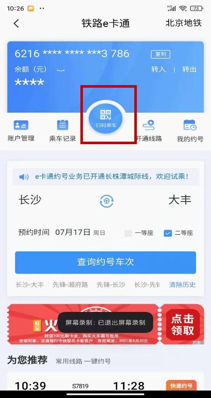 鐵路e卡通旅客進站掃碼乘車,如有異常乘車記錄,則無法生成乘車碼,具體操作步驟如下: