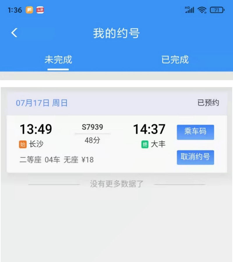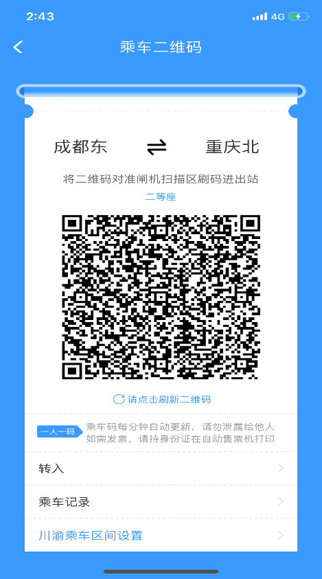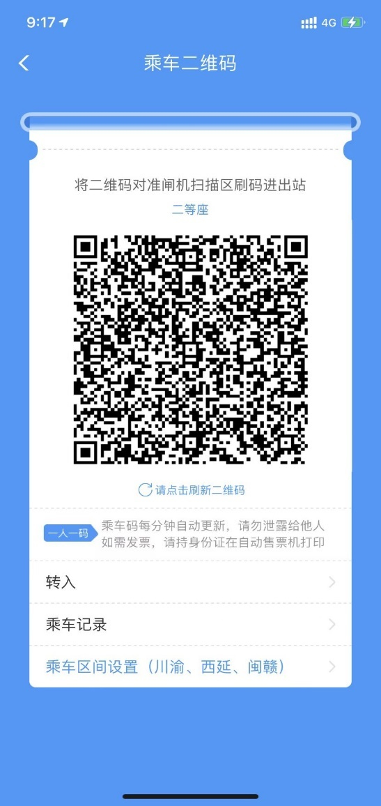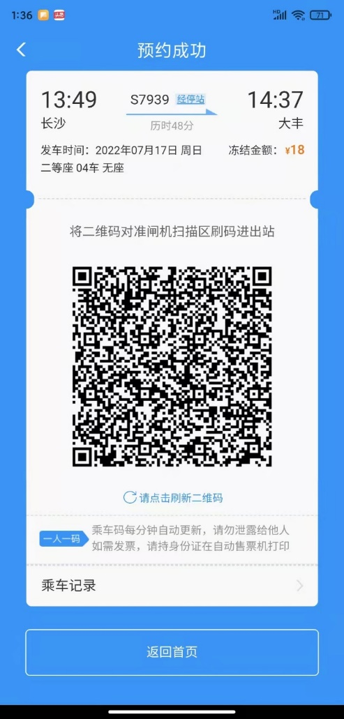 3.使用乘車碼乘車默認為乘坐二等席,扣除二等席相應票款。