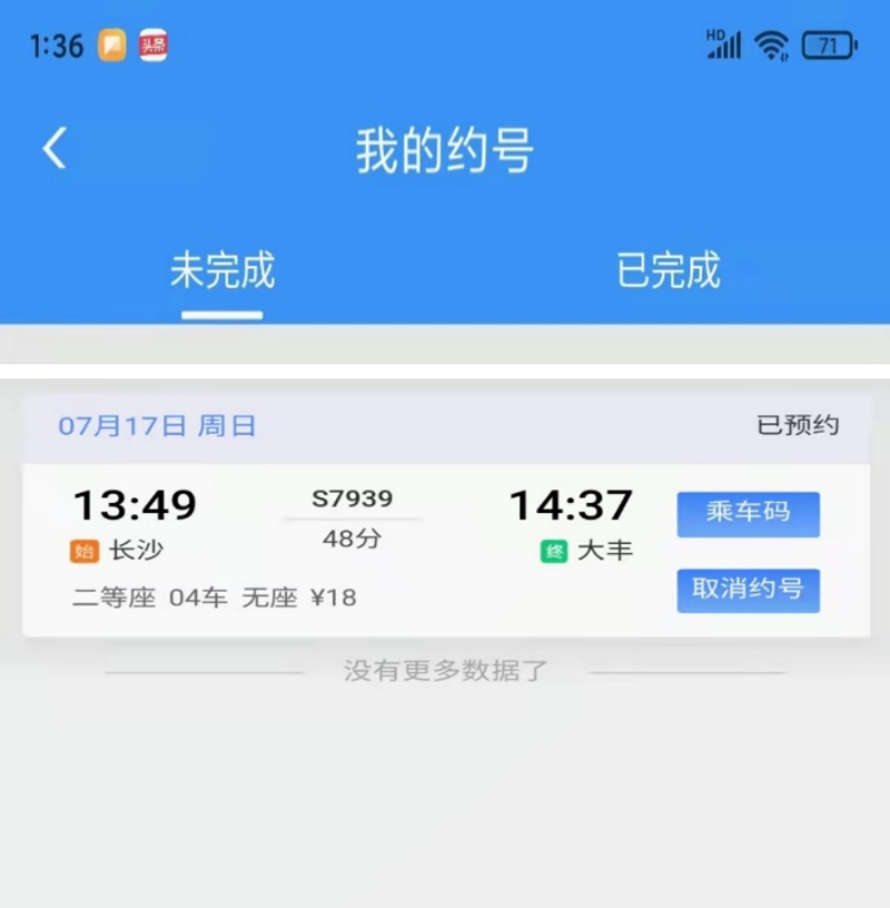 1、旅客如有異常行程,乘車碼無法展示,會一直有彈框提示。