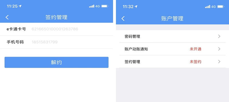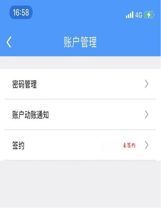 (1)賬戶管理界面,提示未簽約,點擊未簽約按鈕;