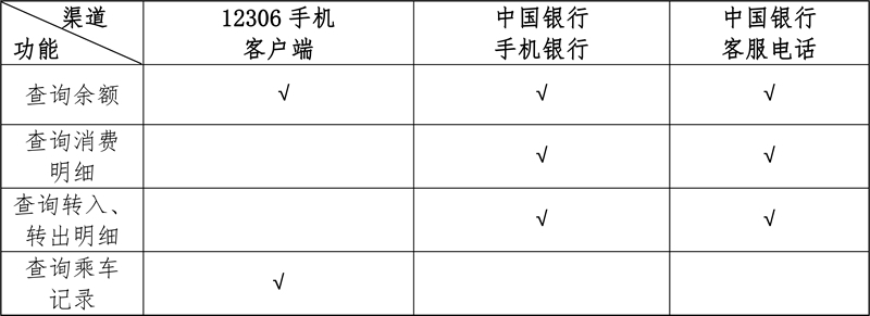提供賬戶余額、金額變動交易明細及掃碼乘車記錄等信息的查詢功能。